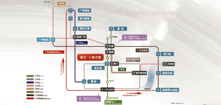 2地铁:紧邻4号线黄阁站;地铁31号线(规划中),连接庆盛枢纽,串联南沙南北向经济大动脉,项目旁规划地铁“黄阁”站,落实后可串联4/18号线,畅达大湾区。