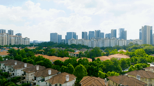 实景样板间(9 号楼)已开放,即便低楼层也能享震撼视野:望出去是 2000-3800 万的锦绣香江别墅,可视范围超 500 米,远处城市天际线清晰;且每间房都有 270° 观景飘窗,实现 “景观平权”,全家人睁眼就是墅景 / 园景。高层视角更优:越过墅顶,与 CBD 摩天楼、大夫山青峦呼应,且是无遮挡永久景观—— 这种视野以往只有千万级顶豪才有。