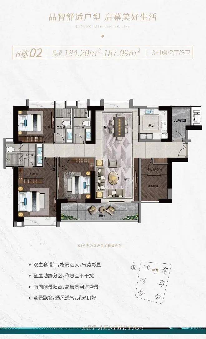 【E6栋184-187㎡臻品四房三卫】