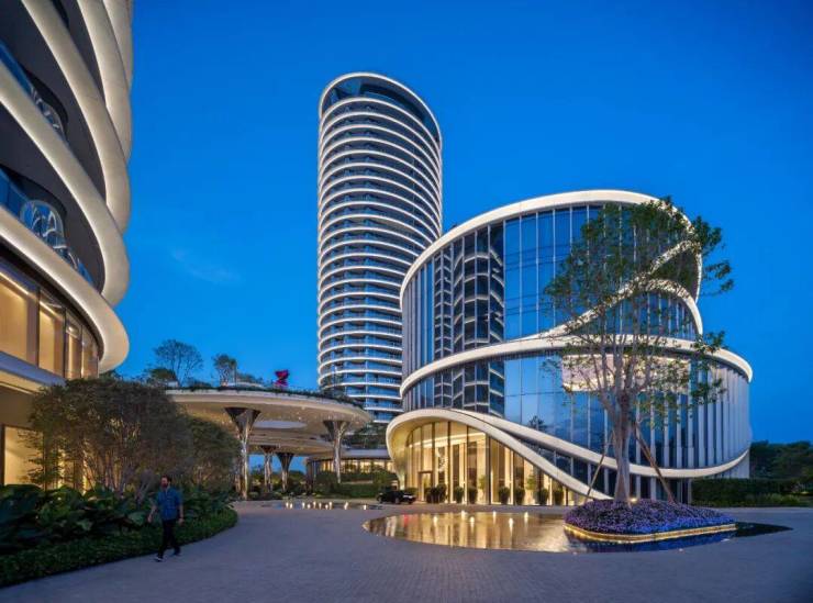 建筑外形圆弧造型优雅流畅,以流线型曲面勾勒出优雅轮廓,以最大化地呈现了270°江景视野;