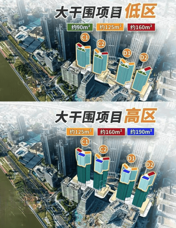 大干围地块总面积约1.5万平,容积率4.2,计容总建面约6万平,属于小而精的类型。