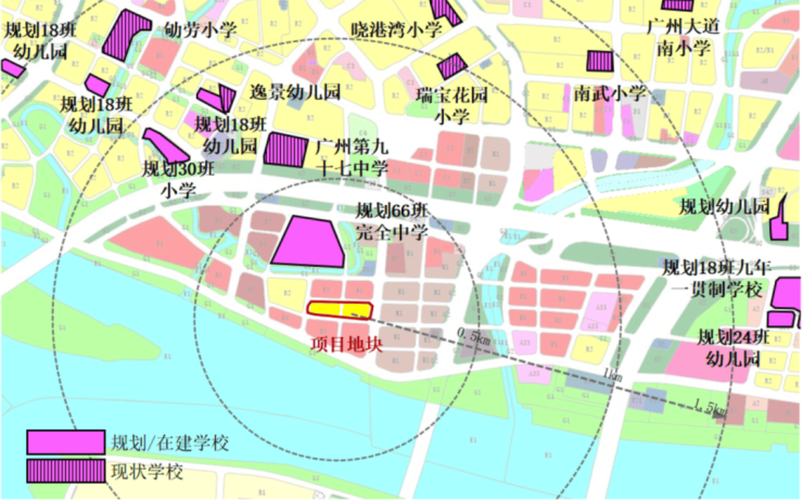 项目周边教育配套完善,500米范围内规划有一所66班的完全中学。约1千米处有广州第九十七中学,1.5千米范围内可享南武小学等教育资源,距离本项目约2千米处还有海珠外国语实验中学附属第二小学。具体学区划分以相关部门公布为准。