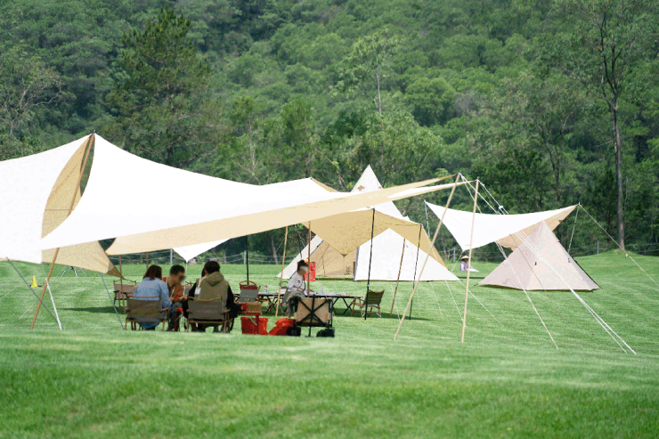 不单水体,项目还对景区原有景观上,进行大面积复绿。你在整个度假区,几乎随处可见各种露营草坪、绿荫草地和生态植被。