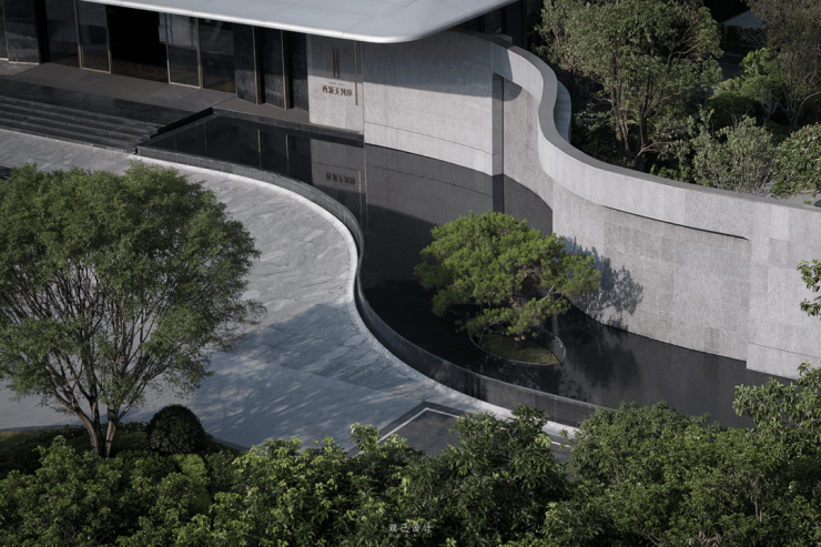 主入口极具尊荣的门头,在尺度感之上,还有景墙、水景,照壁的三重环抱下厚重的艺术气息,走进来,就能感受魂穿超五星级酒店。