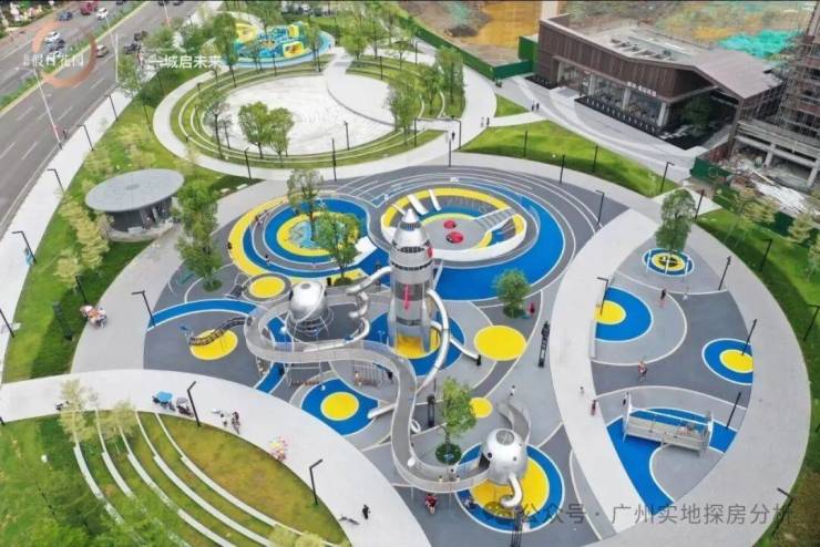 4、休闲设施:拥有4万平方米的星际广场,配备足球场、篮球场、儿童游乐区等全龄化设施,是网红打卡地。