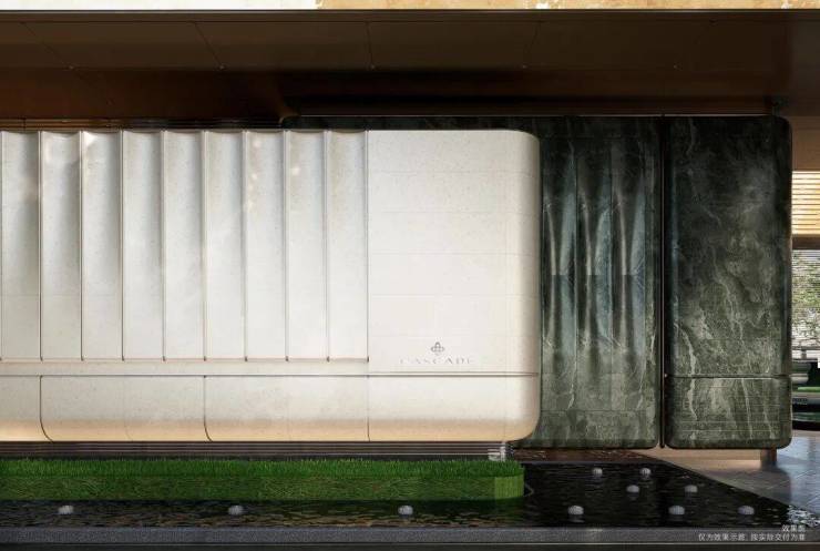主门楼选用意大利Prada绿石材,高级感立显;立体式垂直园林、带瀑布造型的悬浮泳池,兼顾美观与功能;9米抬高穹顶长廊灵感源自卢浮宫阿波罗永恒长廊,仪式感与实用性并存。