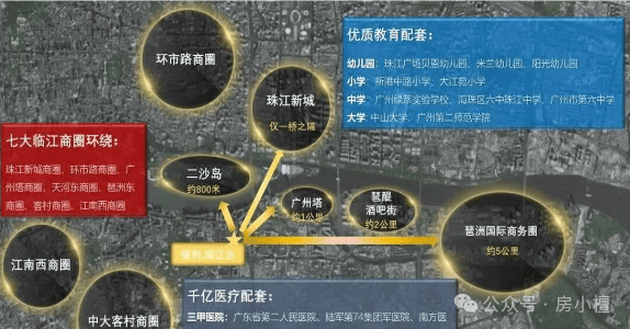 项目北靠珠江新城,东北望广州塔,一桥即达珠城CBD,仅5分钟即享受150万㎡的千亿级商圈,K11、天河城、天环广场、太古汇等大型购物中心齐聚。
