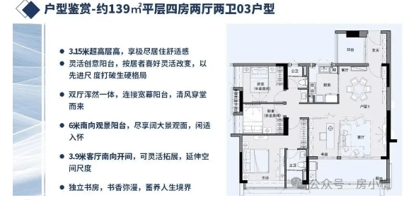 高区20-30层则是两梯两户的设计,户型为208-210㎡的大平层四房产品,整个项目住宅总共仅92户稀缺单位,产品户型主要面向市中心改善型客户群体。