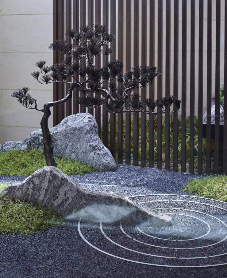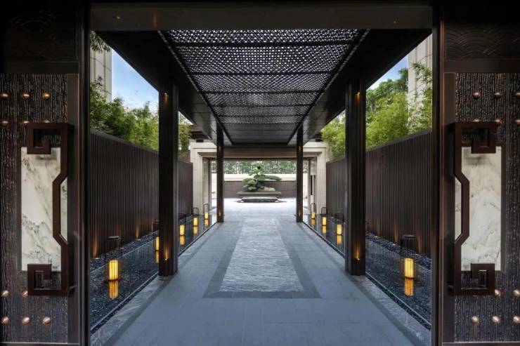 在景观规划上,项目将中国传统园林的内涵以现代设计手法层层递进,演绎传递给人们,营造符合当代人审美,简洁而又意味深长的景观空间。如沿路闲情逸致的曲水流觞和富有禅意的枯山水景空间,以及恢宏的主入口空间和端庄的迎宾中轴空间等,都让人宾至如归,感受到了项目的尊贵与大气。