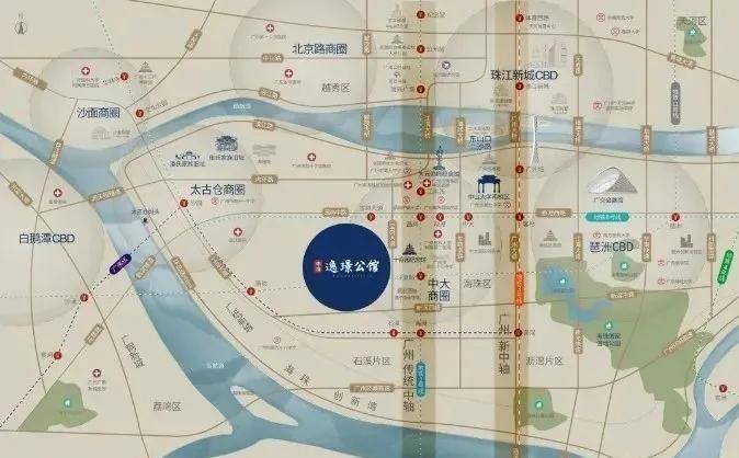 中冶·逸璟公馆位于广州海珠区,地处宝岗大道、江南大道、工业大道三大黄金走廊的交汇之处,这一地理位置不仅赋予了项目得天独厚的价值叠加效应,更使得项目能够轻松连接全城各大商圈及交通枢纽。
