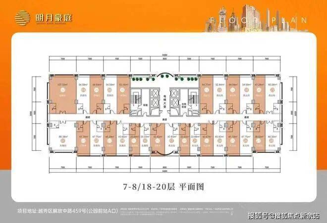 :建面约 28 - 115㎡的平层公寓,主力面积段为 35 - 55㎡小面积产品,满足不同客户的需求。产品面积跨度大,可灵活打通,且户户明火,窗地比舒适,居住属性较高。