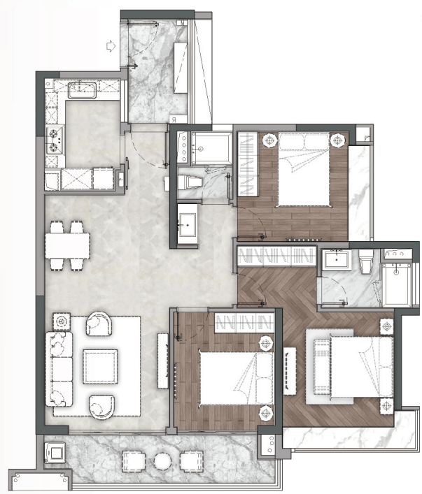 TOP1:【A1&A2--01&02】 建筑面积约120㎡三房两厅两卫