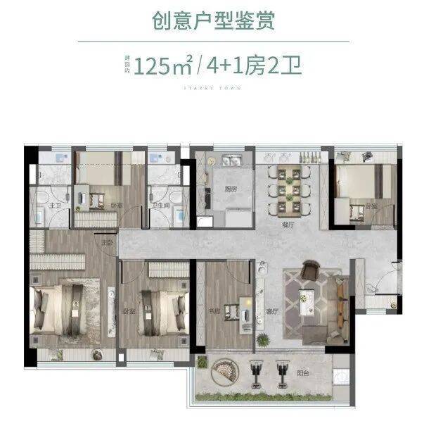 最灵活 | 125㎡ 4+1房·五开间朝南