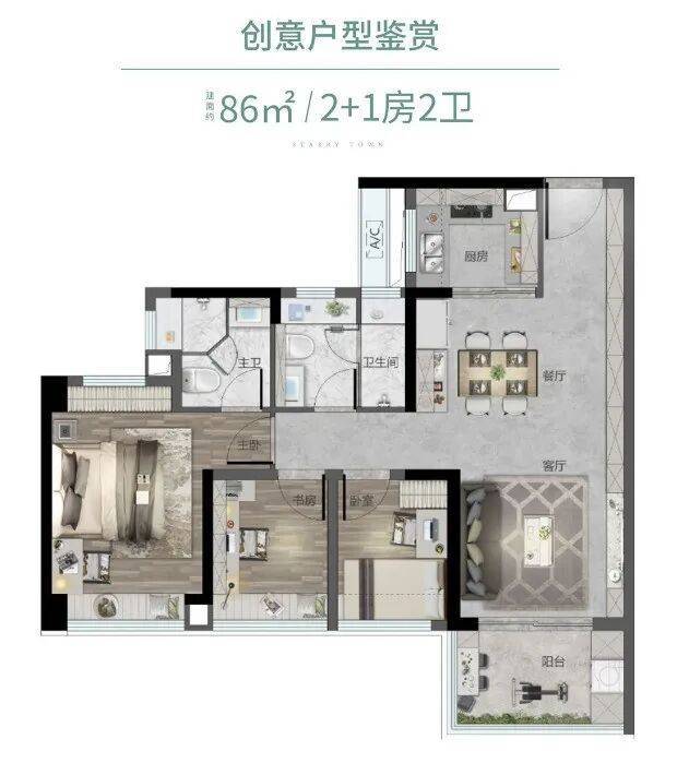 最实用 | 86㎡ 2+1房·全开间南向