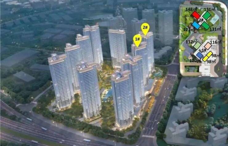 小区总共有15栋楼,分为南北两个地块开发,南地块有10栋,北地块有5栋,首推南地块,采用围合式布局,最大楼间距可达150米左右。