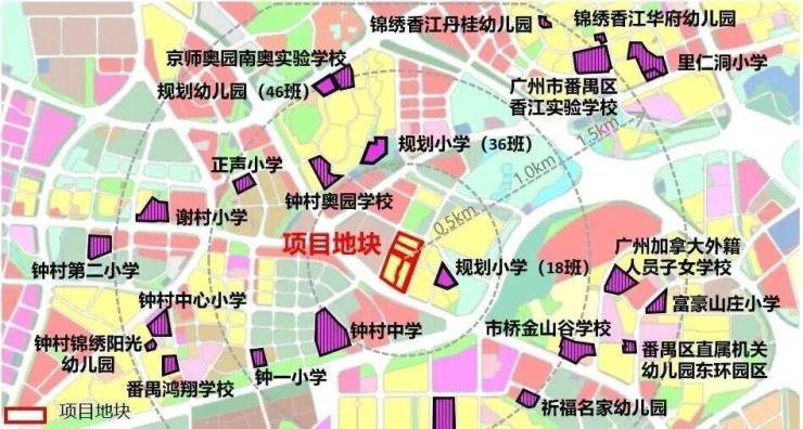 项目教育条件:项目自身只配建了一所12班的幼儿园,没有配建小学和初中,目前附近有2块教育用地,规划了1所36班的中小学以及一所36班的小学,但是这两所学校何时能落地已经学校品牌,和开学时间都是个未知数。周边还有九年一贯制钟村奥园学校、省一级钟村中心小学、省一级钟村中学、祈福新邨学校。