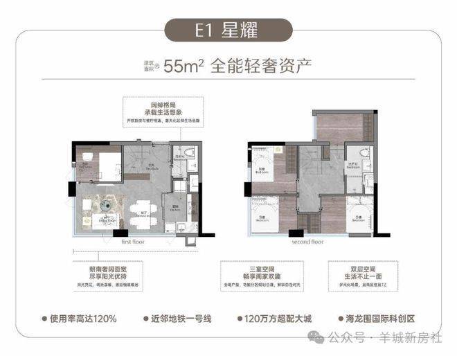 :主推38-55㎡LOFT,采用“双钥匙”设计,买一层得两层,租金收益翻倍;