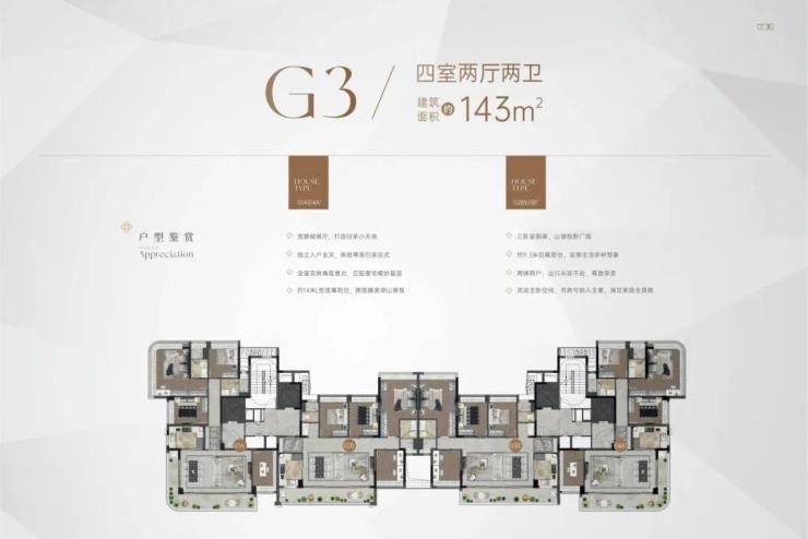 最新加推了大平层G4栋143㎡四房两卫、两梯两户板楼设计。17层小高层半山洋房!