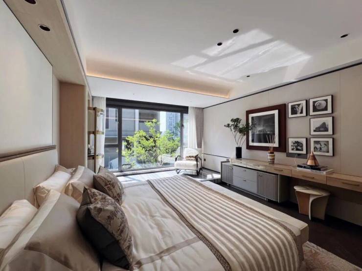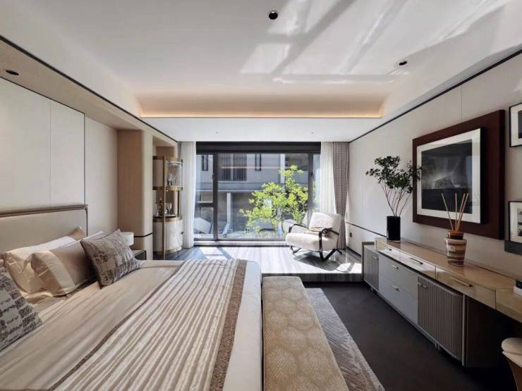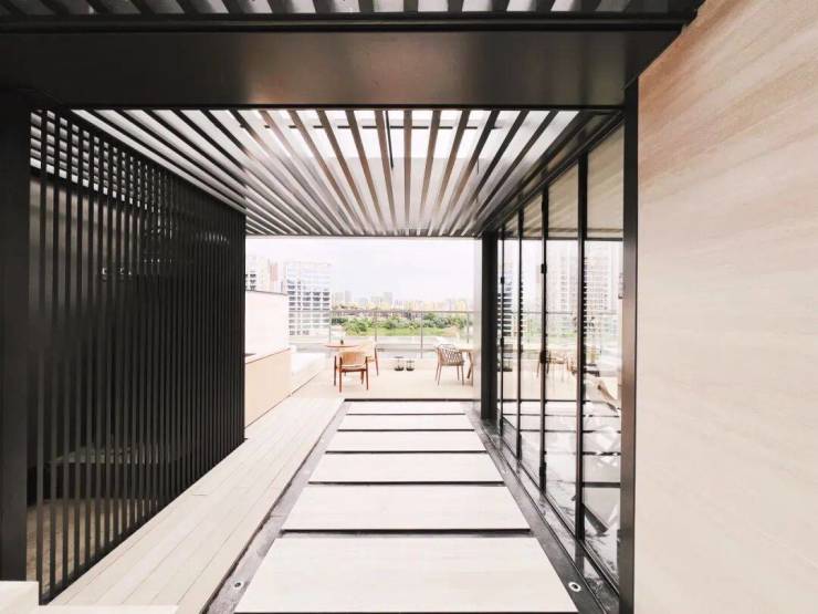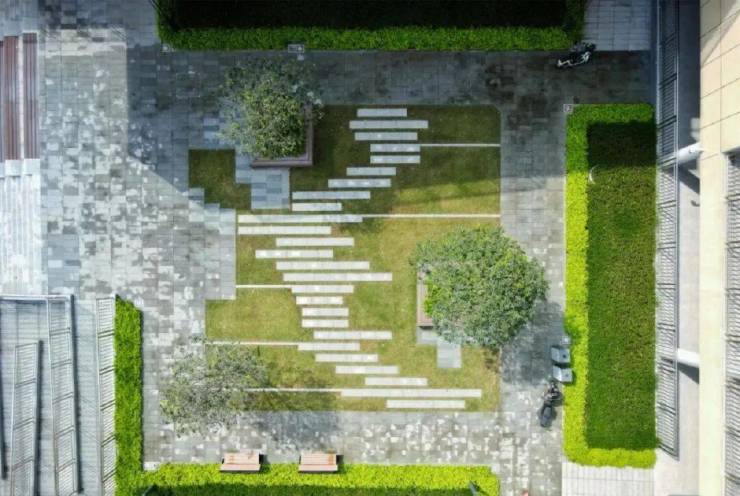 🔘叠院三台地退台式的设计,带来“步步高升”的体验,与一线南向湖景相互呼应,一步便是一景。