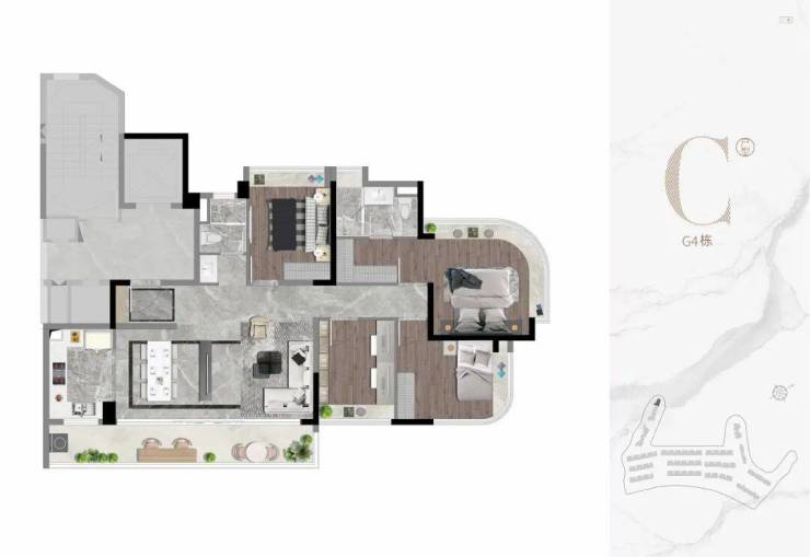 🔘大开间设计,近14米转角阳台,呈现出最大约270°视野。