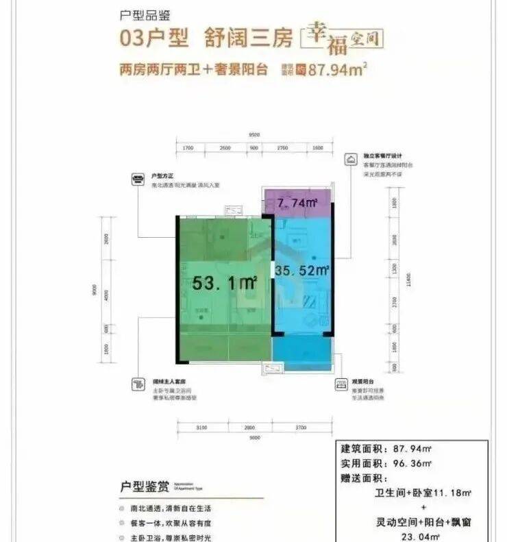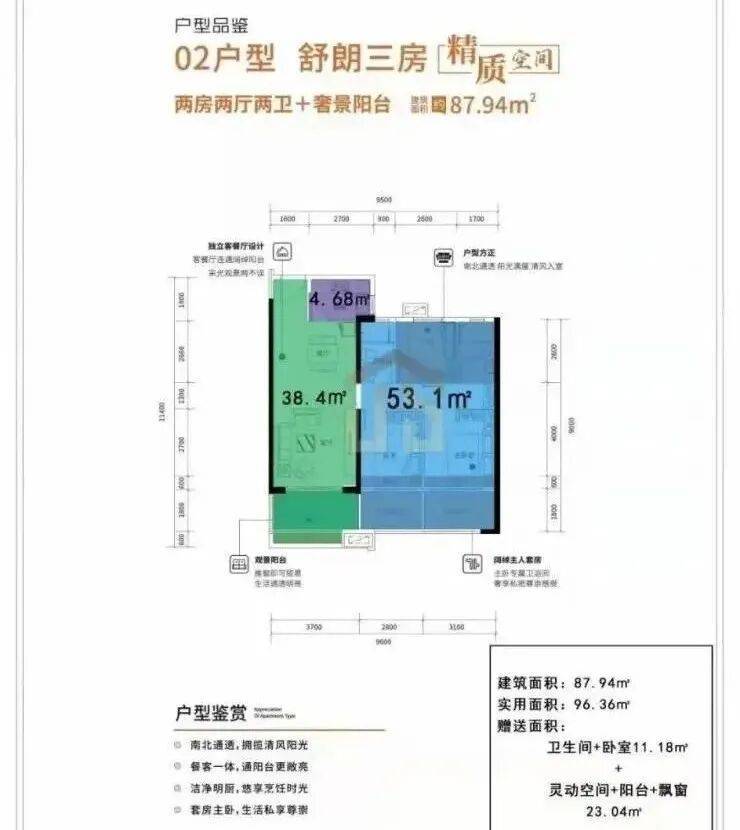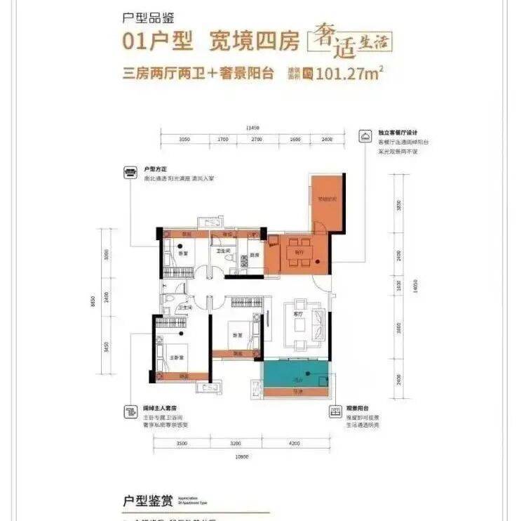所售户型均南北朝向,室室通透,自带全通一体化宽景阳台;