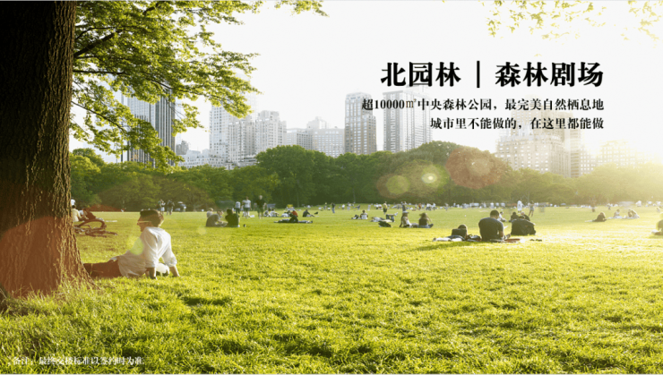 北园林主题——森林剧场,规划打造大面的公共绿地,是以儿童活动、娱乐、运动为主打造的功能型园林,满足业主的日常需要