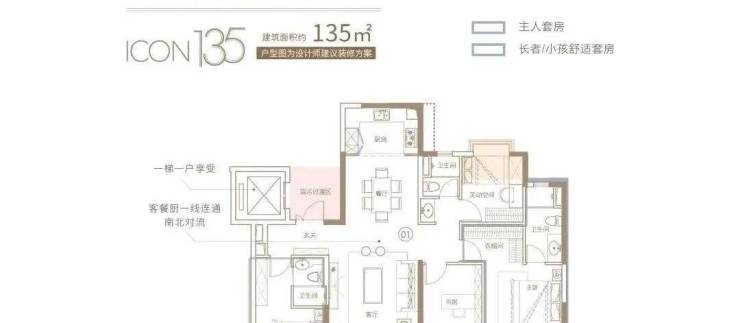 以阳台-客厅-餐厅为轴芯,实现三代人的生活分区。即使在同一屋檐下,三代生活也互不干扰。