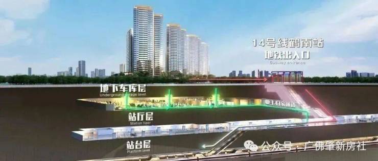 与14号线鹤南站A出口联通,直达社区地下二层车库的楼栋大堂,无忧天气变化,从容便捷归家。