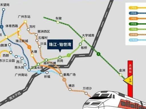 地铁:步行约500 米即达地铁 7 号线员岗站,1 站到万博 CBD,5 站直达珠江新城,无缝换乘 3/18/22 号线,畅达全城。