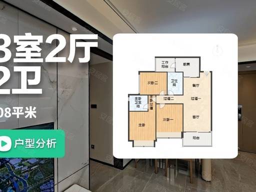 108㎡ 三房两厅两卫:三开间朝南,双阳台南北对流,入户花园,刚改优选。