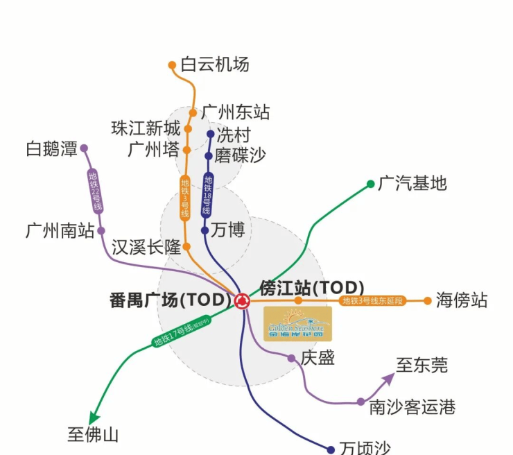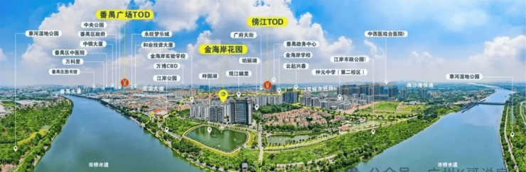 金海岸花园紧邻3号线东延段傍江站TOD,1站直达番禺广场、2站万博CBD、3站广州南站及琶洲、4站即达珠江新城,畅享番禺广场TOD及未来规划发展的经济红利!