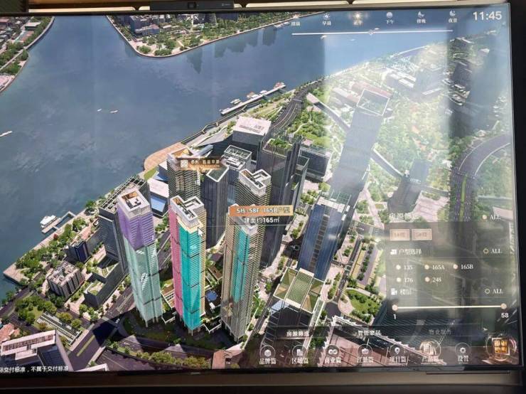 共5栋楼,总高56-58层,首推1/5栋,1栋57层,43层以下是两套176方的,45-57层是一套248方的,5栋是塔楼,一户139,两户165,超新规产品,得房率据说有130%。