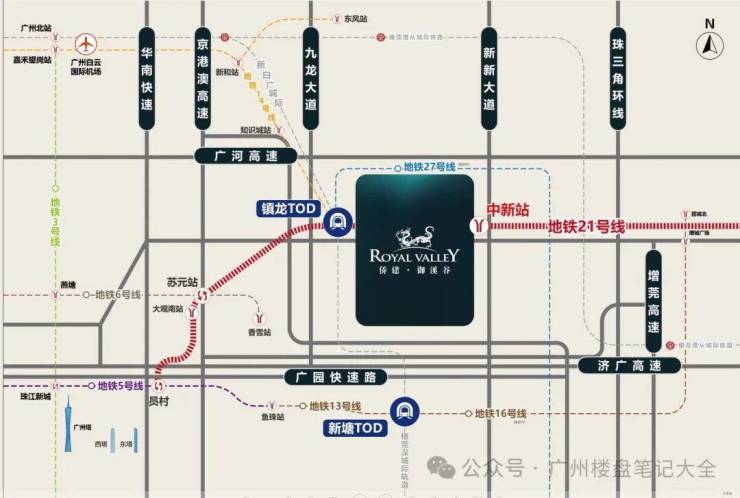 • 地铁21号线中新站上盖,快线3站到天河