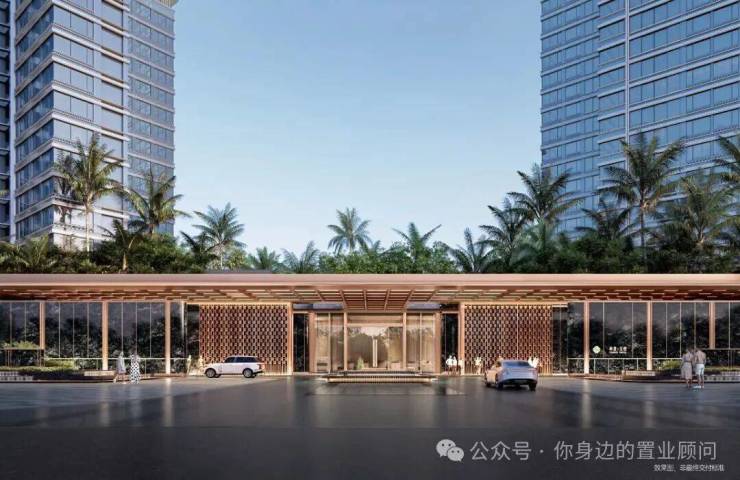 ①酒店式环岛门庭:无雨落客,仪式感归家门庭,约70米超长奢阔延展面,约7米高门阙,气度非凡仪式感满满.