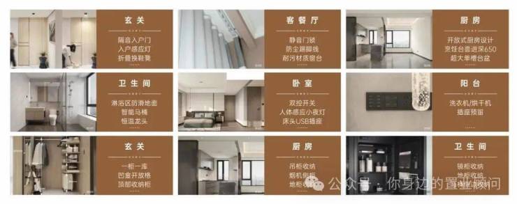 全屋甄选一线品牌精装交付,中央空调+新风系统、热水器、洗碗机、净水器、智能家居等,八星智控系统,优于市场同等档次标准.