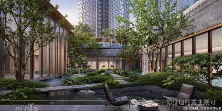 ③度假感下沉庭院:东方园林山水造诣,层级叠错。自然地形结合叠水叠石,形成特色森系庭院.