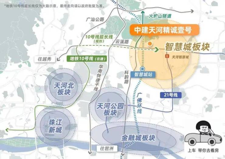 中建天河精诚壹号位于天河区华观路旁,刚好处于珠江新城、琶洲、金融城各个CBD相差约6公里内的范围,属于天河智慧城的核心区域,周边汇集了2500多家高精尖科创企业,如小鹏、酷狗、网易等,区域的未来发展前景十分可观。