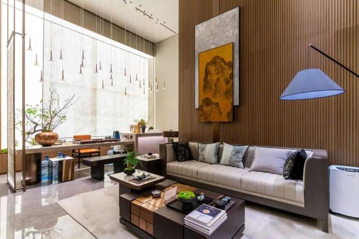 走进大门,是中建斥资782万打造的新中式园林,在这里,巷、道、廊、桥、亭串连成珠,一石一木皆具诗意,东方古韵无处不在。