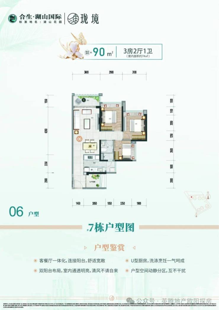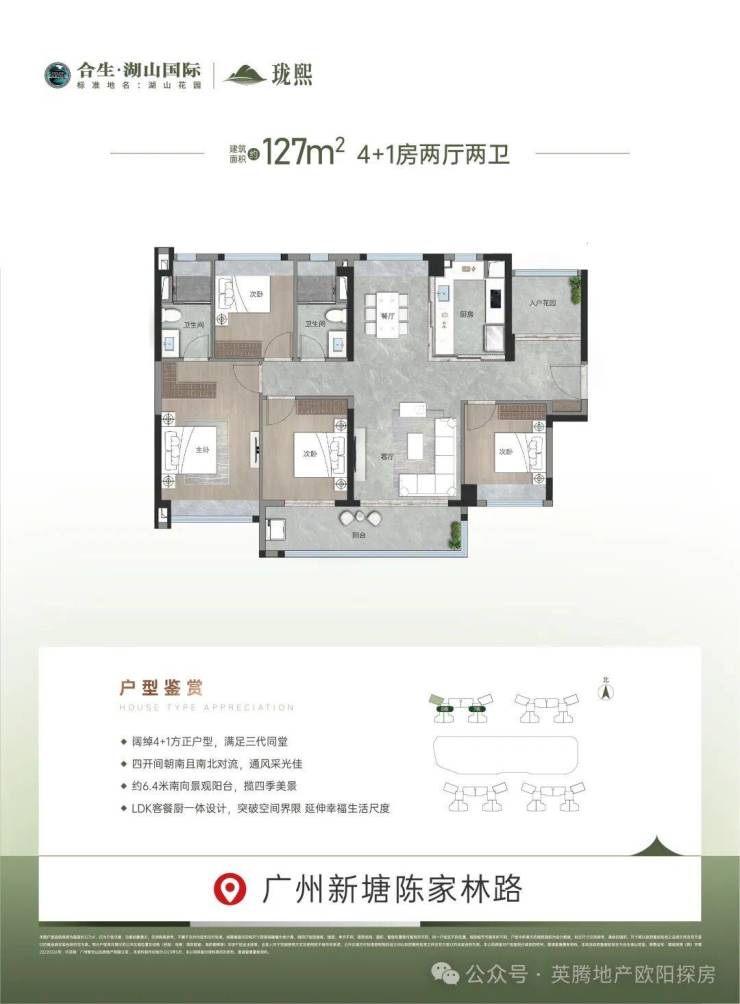 【亮点】四开间朝南且南北对流,通风采光佳,约6.4米南向景观阳台,LDK客餐厨一体设计