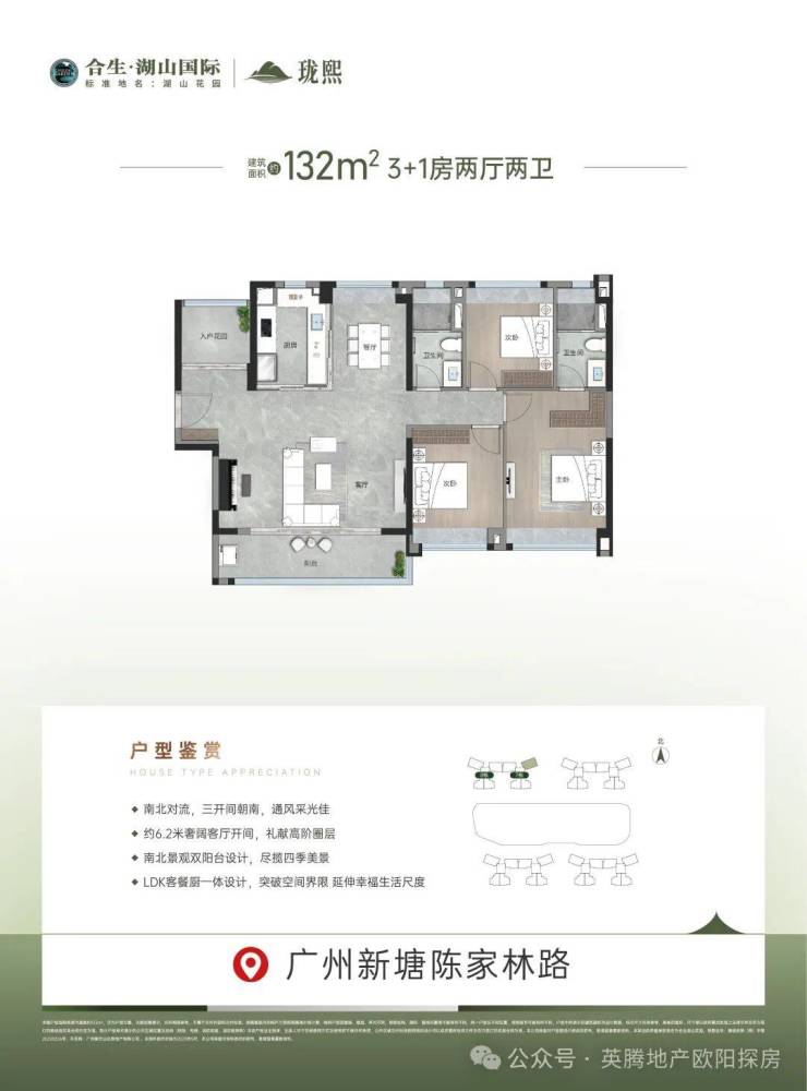 【亮点】3+1房户型,实用率超八成,百变空间,约6.2米奢阔客厅,三开间朝南,南北景观双阳台设计,LDK客餐厨一体设计