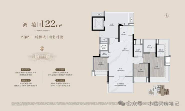 还有3栋122方板楼,有16方左右的电梯厅,目前价格还没出。三月中下旬开放实景+样板间。