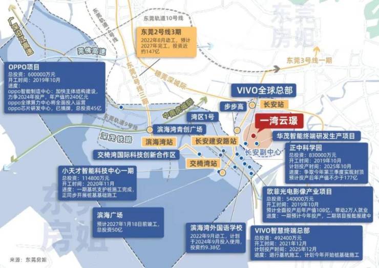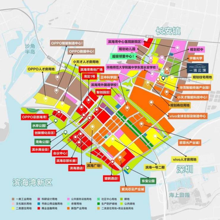 千亿级高端产业集群已成规模,OPPO、vivo全球总部、宇瞳光学、小天才智能制造中心、华茂智能终端产业园等均已进驻,将实现高层次人才两年翻番。预计至2035年,将吸引约70万高新人才就业,常驻人口规模约50万,超松山湖近2倍。