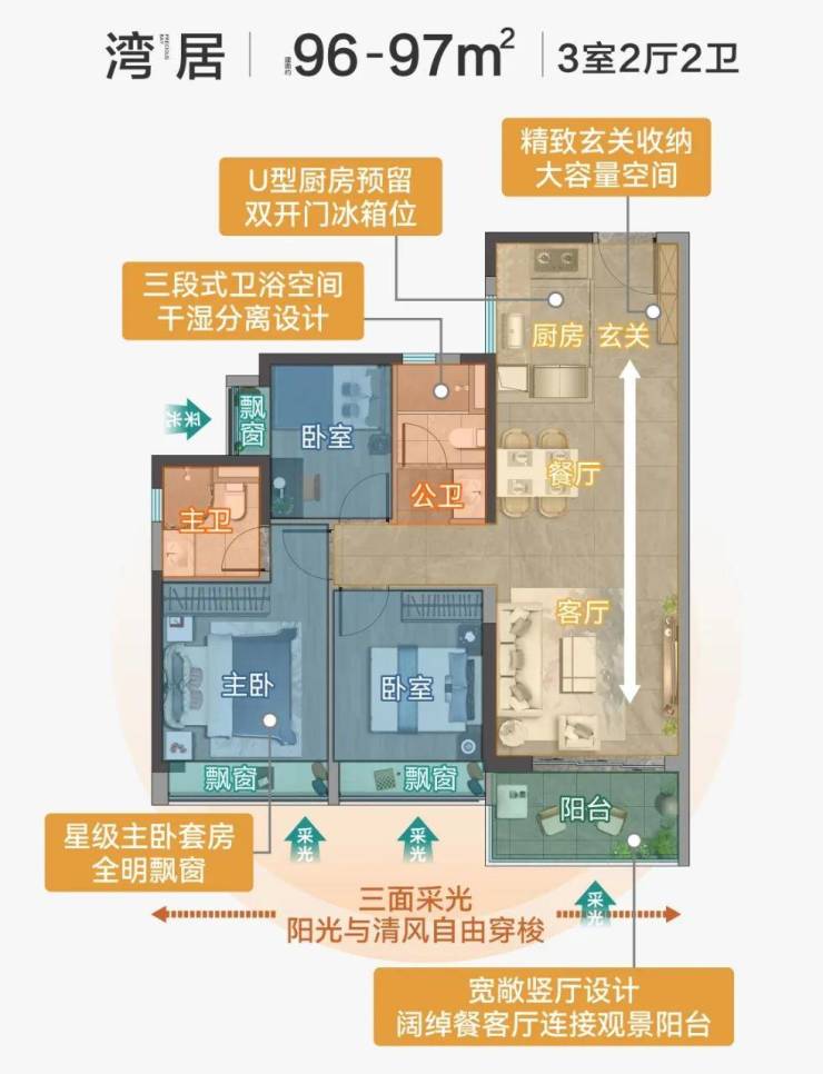 建面约96-120㎡揽海臻装三四房 澎湃上新