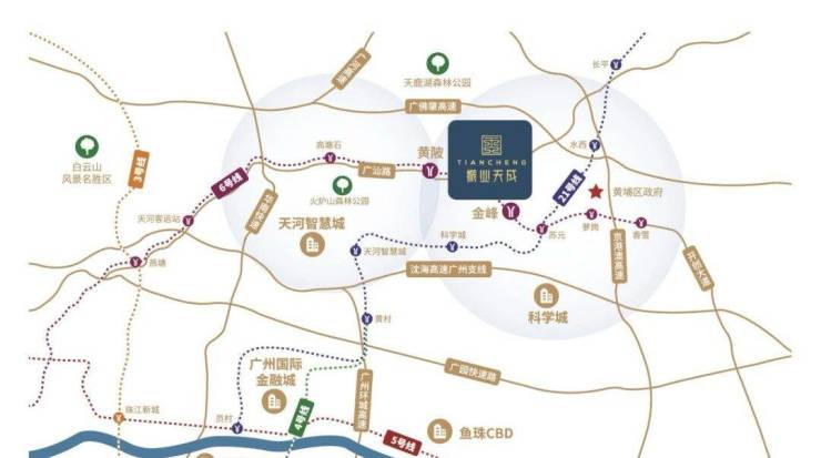 城市轨交:20分钟步行,可达地铁6号线黄陂站、金峰站双站点,2站可达苏元换乘21号线,6站天河客运站。