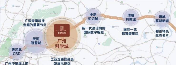 振业天成位于广州第三发展中轴线“科技创新轴”,天河智慧城和黄埔科学城双城交汇之地;落址广汕路中芯位置,生态商务居住三合一,发展前景堪比黄埔大道。
