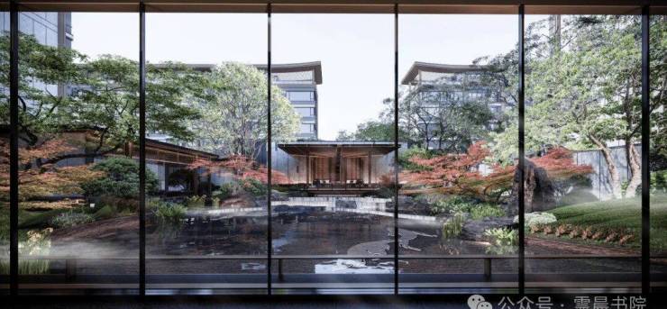 建发·朗玥,正是取意江南园境,以枫泾古镇为设计灵感,立意国画《六月荷花图》,在约1.8容积率的园林中,营造“一轴三进五园九景”的诗画美学园境。