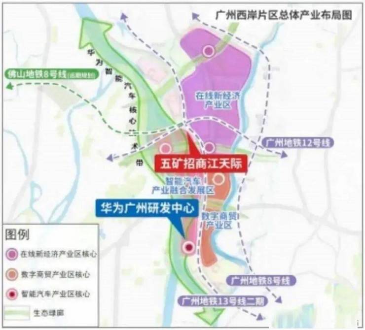 湾区新岸的产业发展规划了以华为为核心的一带三产,百亿智能汽车产业稳步成型,分别是华为智能中心技术带、智能汽车产业融合发展区交汇、在线新经济产业园、数字商贸区。