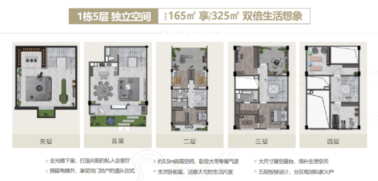➡165-265㎡江岸天地院墅 1000万/套起