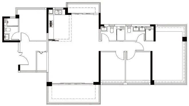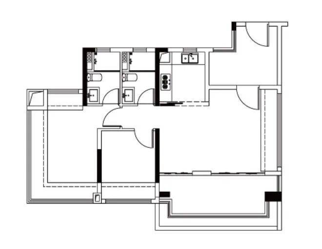 约104㎡ 4空间2卫:6.1米大阳台,四开间朝南,空间利用率高。