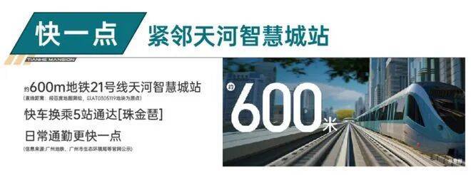 地铁:项目距离21号线天河智慧城站约600米,步行即可到达。通过地铁21号线,3站可达金融城车陂南站,4站可到琶洲万胜围站,5站直达珠江新城潭村站(地铁快线换乘)。此外,广佛东环智慧城站(在建中)将直通广州南站和白云机场,方便快捷地连接湾区各大城市。